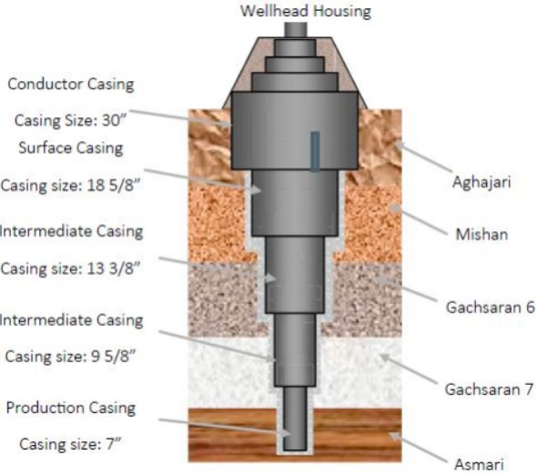 Скважина этого исследования, которая называется Скважина А, была запланирована пройти через формации Гачсаран и достичь общей глубины 4115 м для добычи из резервуара известняка Асмари. Дизайн заканчивания и формации, пересекаемые во время бурения этой скважины, показаны на Рис. 1. Свойства бурового раствора на водной основе, используемого во время бурения, обобщены в Таблице 1.